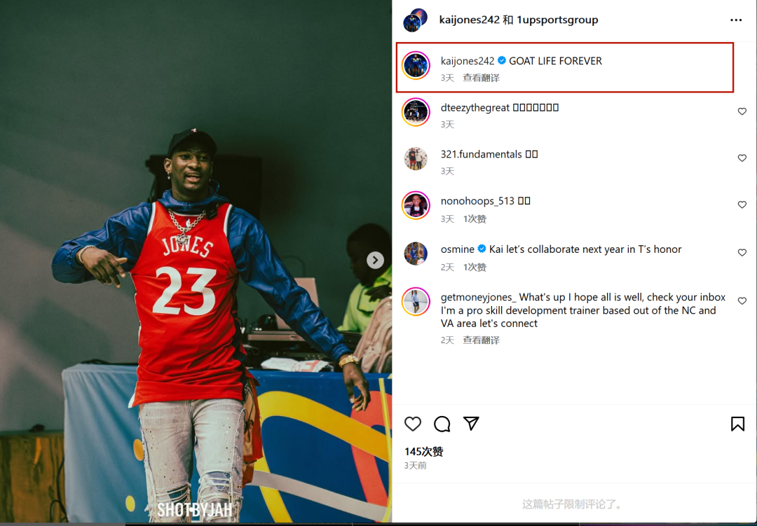 今年8月中旬,凯-琼斯在热火连续试训四天。凯-琼斯在NBA已经效力满四年,无法再签双向合同,热火舍不得把最后一份正式合同给他。凯-琼斯出生于2001年1月19日,身高2米11,臂展2米17。24岁离开NBA,他依然自称GOAT!