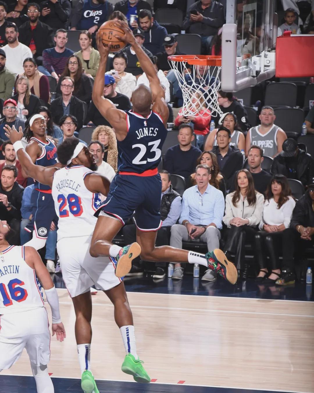 凯-琼斯防守短板太明显:体重不够,顶不住5号位;很喜欢跳,容易吃晃。凯-琼斯是2021年首轮19号秀,NBA生涯打了107场比赛,其中6场首发。场均出战10.1分钟,得到3.5分2.4篮板0.5盖帽,三项命中率:67.1%,23.1%,68.2%。