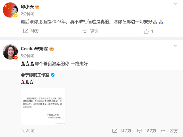 其中王锵的发文最叫人觉得惋惜,王锵称明明前两天还嘻嘻哈哈,怎么说走就走了。